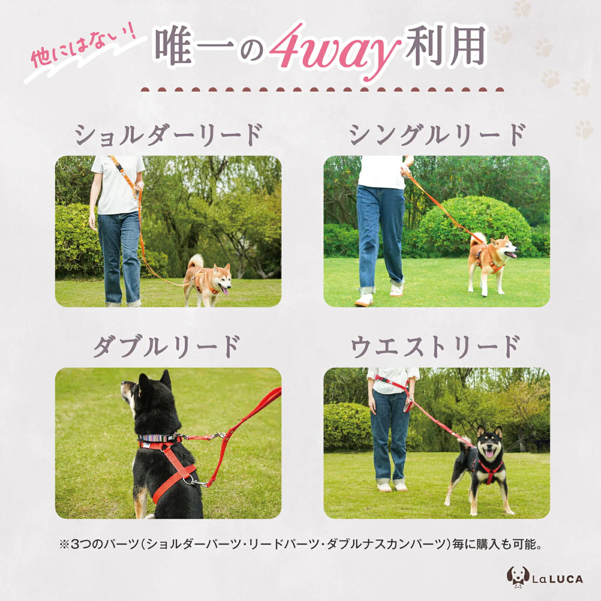 リードを肩がけすることで手ぶらで散歩をすることができ、2頭以上でもリードを増やすことで楽に散歩することができるのでおすすめです!