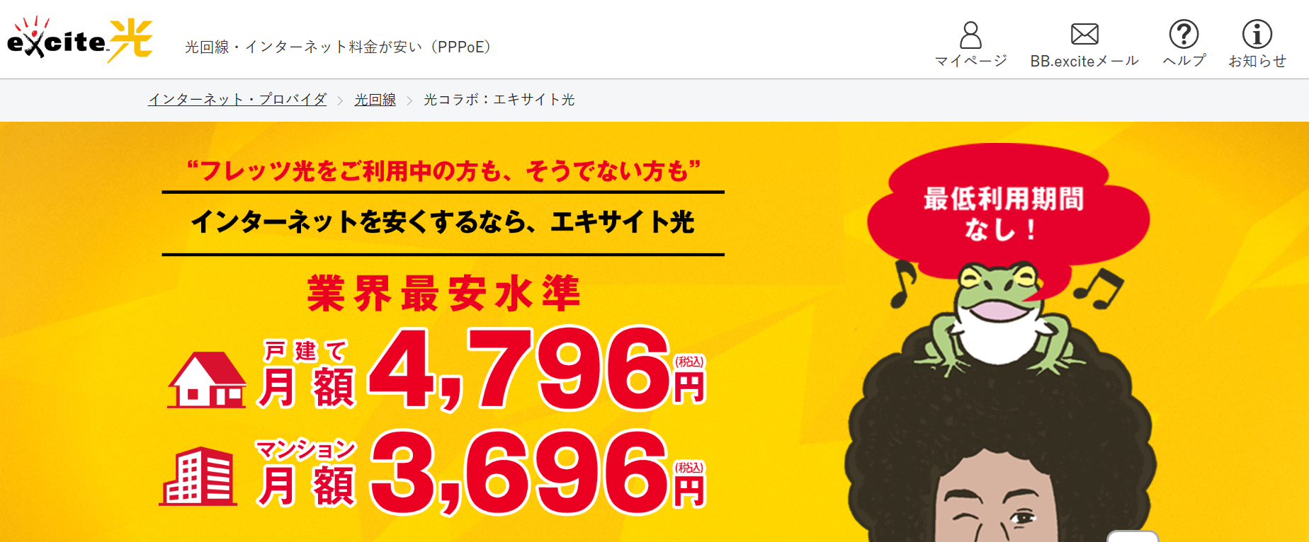 エキサイト光は、エキサイト株式会社が提供している光サービスで、NTTのフレッツ光回線を使用しています。
